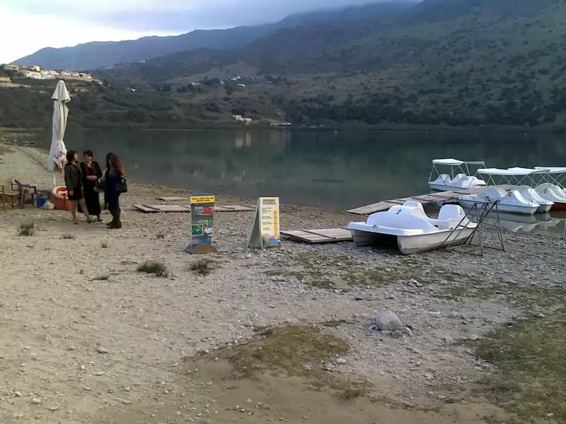 Kournas is a fairly large village perched over a hill overlooking the lake. Crete, the only lake with fresh Water is relatively large with a perimeter of 3.5km. You can get there by driving a car you rented.